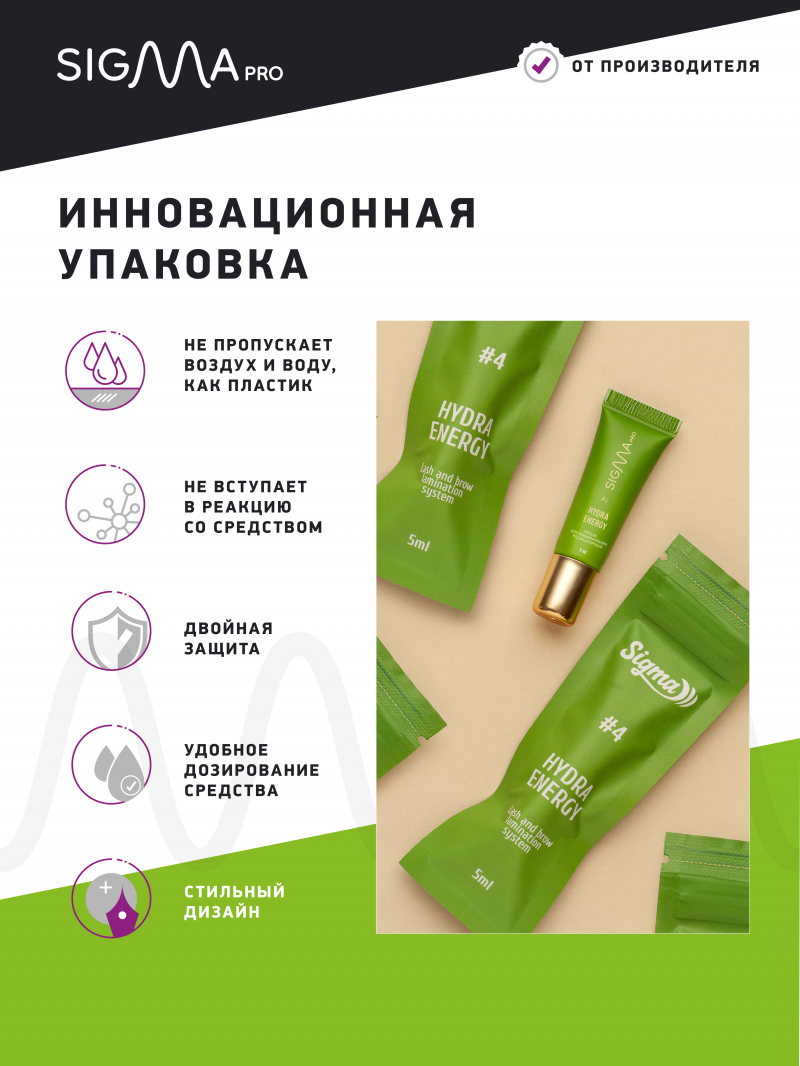 Активная сыворотка Sigma Hydra Energy - 4й этап в процедуре ламинирования ресниц Sigma и вторая фаза глубокого восстановления ресниц, направленная на увлажнение, запечатывание результата, восстановление барьерной функции.